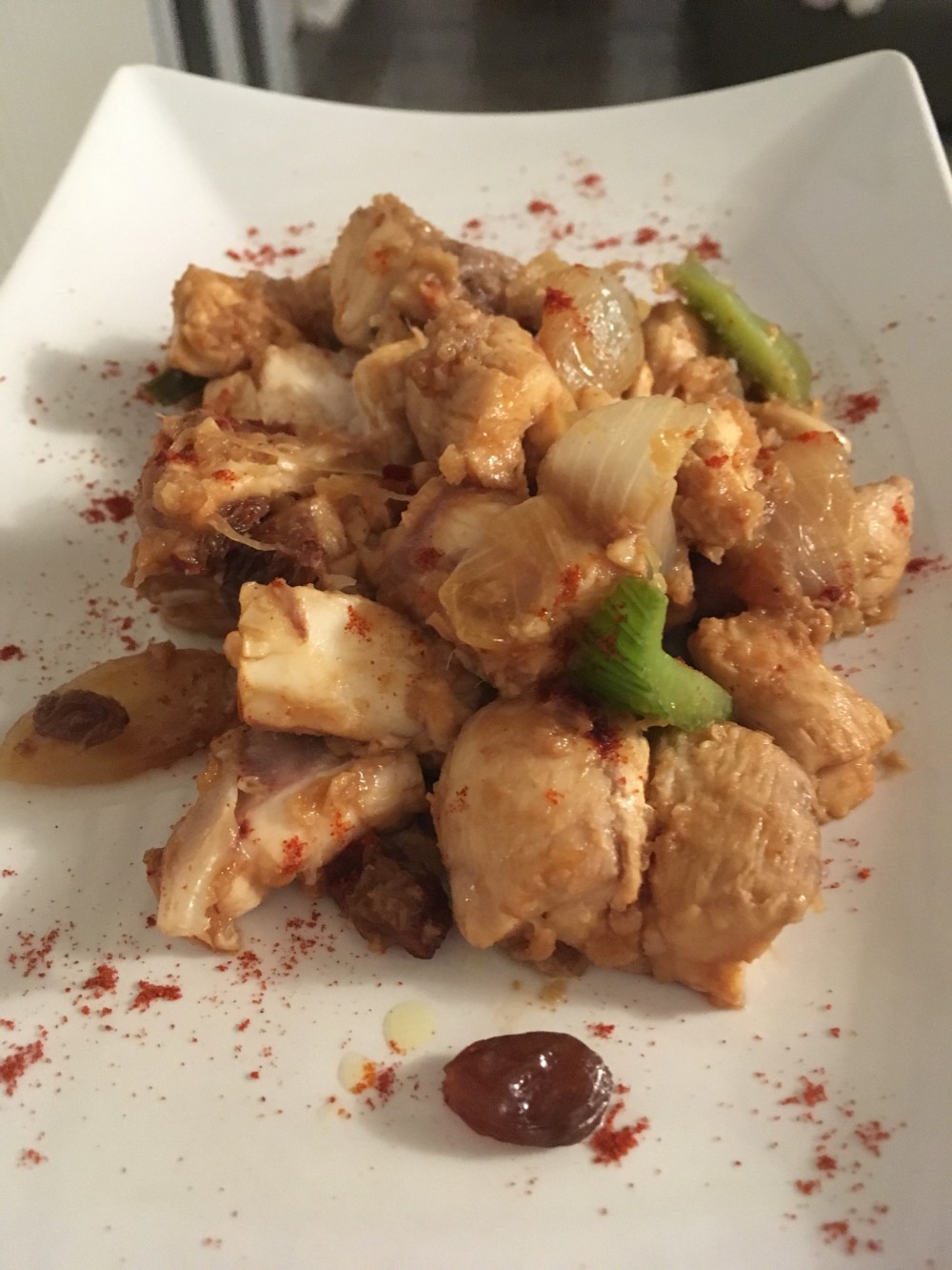 Mondiamo le cipolle, tagliamole a spicchi e lasciamole imbiondire in una casseruola con un filo d’olio. Aggiungiamo poi il sedano e facciamo rosolare per 2/3 minuti prima di aggiungere il gattuccio e l’uva passa con l’acqua con cui l’abbiamo reidratata. Aggiustiamo di sale e pepe, lasciamo cucinare a fiamma viva per 10 minuti, aggiungiamo lo sherry e lasciamo sfumare per 10 minuti a fuoco basso.