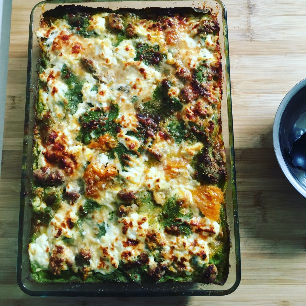 Questa domenica, ad esempio, è stata la volta del cavolo nero, che non ho utilizzato per preparare la ribollita o il minestrone, ma per farci una lasagna. Devo riconoscere che il risultato è andato ben oltre le aspettative: la teglia di lasagna era così bella da sembrare la tavolozza di un pittore e il sapore forte e pungente del cavolo nero ha esaltato ancora di più il condimento a base di zucca, salsiccia e ricotta che avevo già provato con un’altra lasagna verde (vedi ricetta del Ciambellone di lasagne verdi con zucca, ricotta e salsiccia ).