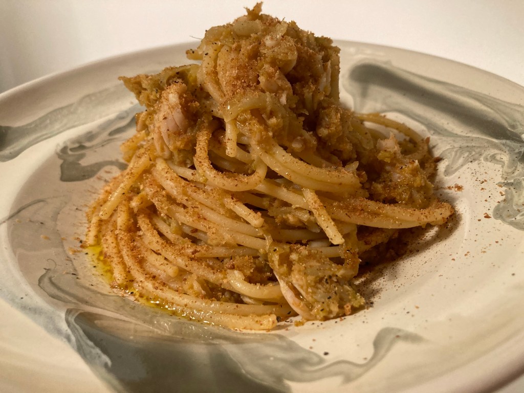 E’ una versione un po’ gourmet della pasta con i broccoli ripassati alla palermitana, con l’immancabile mollica atturrata (abbrustolita, ndr). Ma l’aggiunta delle triglie eleva il piatto ad un livello di sofisticazione che davvero non posso spiegarvi. Dovete provarlo da voi.